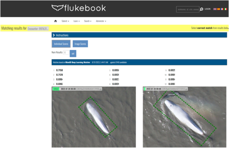 In the Where's Whale-do? competition, winning solutions used deep learning approaches from facial recognition tasks (particularly ArcFace and EfficientNet) to help the Bureau of Ocean and Energy Management and NOAA Fisheries monitor endangered populations of beluga whales by matching overhead photos with known individuals.
