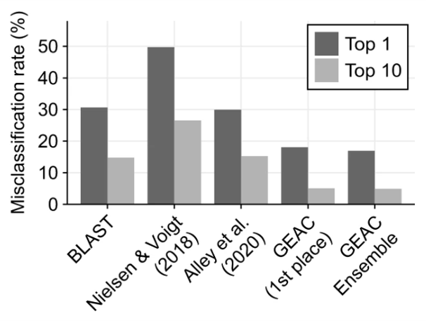 Another example is the Genetic Engineering Attribution Challenge, a first-of-its-kind competition where participants built tools to help trace genetically engineered DNA back to its lab-of-origin. The winning solutions drastically outperformed previous models at identifying true labs-of-origin. An analysis of the results was published in Nature Communications in 2022, highlighting the impressive performance and techniques used to push forward the state-of-the-art in this domain.