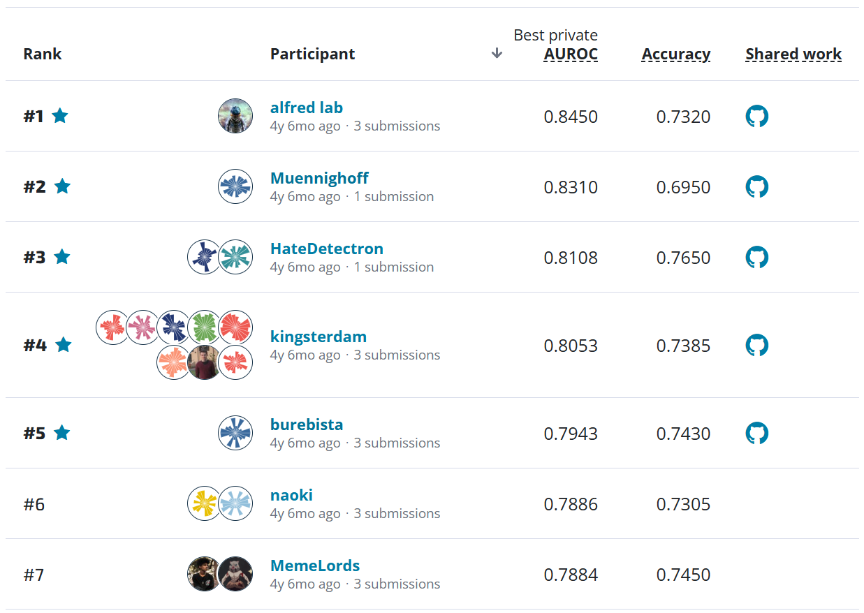 For example, following the Hateful Memes challenge, the research team at Meta AI published the results in the Proceedings of Machine Learning Research and discussed them at NeurIPS 2020. Challenge participants also published their individual approaches. The winning approach provided a relatively early demonstration of the effectiveness of using multimodal transformers for tasks involving text and images.